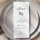 Menu de Casamento Negro e Branco da Caligrafia Mod