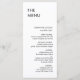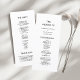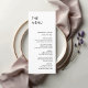 Mantenha suas mesas recepções de casamento elegantes e eterno com este menu de casamento preto e branco minimalista. Projetada com a tipografia moderna e um layout limpo, esta placa de janto personalizável é a maneira perfeita de mostrar seus detalhes de refeições de recepção em estilo. Personalize com seus nomes, data de casamento e cursos de cardápio — de cocktails e aperitivos a entrenes e sobremesas. Sua design versátil se encaixa perfeitamente com qualquer tema de casamento, seja moderno, clássico ou formal de gravata negra. Coordenar com convites de casamento, cartões RSVP, cartões de obrigado-você, números de mesa, etiquetas de vinho e etiquetas de presentes para um pacote completo de papelaria. Perfeito para: Recepções de casamento e jantas de ensaio refeições ociosas elegantes Casais de casamentos minimalistas, preto e branco ou modernos, à procura de eternos, na moda
