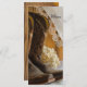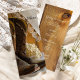 Personalize o encantador Cowboy Boots and Lace Country Western Wedding Menu com os detalhes da refeição que servirá no seu janto de ensaio de casamento, almofada de chá de panela ou recepção de casamento adicionando a salada ou primeiro curso, entrada ou segundo curso e sobremesa ou terceiro curso. Personalize-o com os nomes da noiva e do noivo, localização do local e data do evento. Este cardápio de casamento russo, personalizado ocidental, apresenta uma fotografia floral acesa de um par de botas de cowboy castanhas, flor seca de flor de hydrangea e renda vintage aparada de lenço branco com madeira de celeiro marrom. Perfeito para o casal que planejou um estilo casual, mas clássico, de fazenda rural, festa de celeiro, rancho ou tema de casamento ocidental.