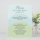 menu de recepção de casamento, feito em bandas redondas de aquamarina, aqua e verde-claro. Personalize o texto da cinza escura para a sua recepção de casamento.