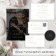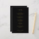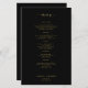 Menu de casamento preto com script simples de ouro