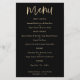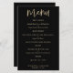 Menu de Casamento Negro Dourado Elegante de Orçamento Um design clássico em preto clássico e ouro a um preço de valor. Com um script na moda set para Menu e personalize facilmente o resto do texto. As cores da fonte podem ser alteradas através do menu de edição. Você também pode alterar as cores de fundo se desejar.