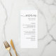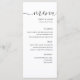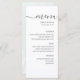 Seus convidados adorarão este elegante cartão de cardápio preto e branco. Com um simples layout contemporâneo com caligrafia na moda, é perfeito para o seu dia especial. Fácil de editar, ele permite personalizar sua recepção de casamento com facilidade.