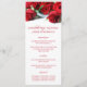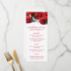 Belo e elegante cardápio de casamento com duas fontes diferentes em vermelho com rosas vermelhas românticas.