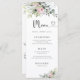 Menu de Casamento Rosa Rosa Verde. Este convite de casamento na moda e elegante apresenta uma linda cor d'água, pintada à mão, eucalipto floral verde rosa rosa rosa rosa. Localizar itens correspondentes na Coleção Rosa Rosa Rosa Verde