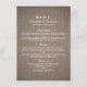 Estes cartões são perfeitos para qualquer casal planejando um casamento romântico por país. O design apresenta um fundo de efeito de burlap rustic com uma redação branca elegante. O design simples pode ser personalizado para se adequar ao seu evento especial e será o menu perfeito para qualquer festa temática rústica, incluindo chás de panela, noivados, chás de casamento, festas de aniversário e muito mais.
