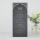 design floral de ornamentado desenhado à mão sobre fundo de chalkboard, sofisticado e elegante, perfeito para o país, casamento rústico; ou um casamento vintage no inverno. Esquema de cor neutro, preto e branco com pouco ouro esticado. Personalize seu próprio cartão de menu e adicione um toque pessoal ao seu casamento!