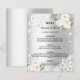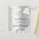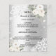 Um fundo de aparência pura prateada decorado com flores, rosas, diamantes e rendas brancas. Personalize e adicione seus nomes e o menu. 1 folha = 1 menu impresso borda a borda.