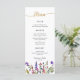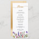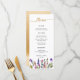 Watercolor Wildflower Simple 3 cursos de cardápio de casamento apresenta uma rubrica falsa de caligrafia dourada, borda e salada de flor silvestre, entrada e modelo de sobremesa. Há também espaço para os nomes da noiva e do noivo e a data do casamento. Este esquema exato também está disponível sem os sotaques dourados.