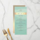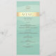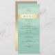 Menu de casamento moderno, elegante, com cor d'água verde e folha de ouro com simples script moderno e monograma no topo.