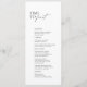 Este design de menu elegante e contemporâneo combina perfeitamente a estética clássica em preto e branco, criando um toque sofisticado para a sua recepção de casamento. A ousada inscrição 'Tempo até o Banquete' adiciona um elemento lúdico, convidando convidados a saborear as delícias culinárias à frente. Com a sua apresentação moderna, este menu não só informa, como também melhora a elegância geral da sua recepção. Para alterar os detalhes, clique em "Detalhes". Para mover o texto ou alterar o tamanho, a fonte ou a cor, clique em "Editar usando a Ferramenta de Design". Projetado para coordenar com a Coleção de Convite para Casamento "Chloe". Visualize o link de coleção nesta página para ver todos os itens correspondentes nesta bela design.