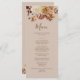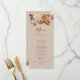 Este elegante e rústico cardápio de casamento apresenta cor d'água queimada manualmente, laranja queimada e folhas de terracota, creme e dálias beges, e belos rosas de cor ferrugem perfeitos para um casamento de outono ou outono! (Texto castanho sobre fundo esticado.)