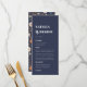 Edite facilmente os nomes da noiva e noiva, a data do casamento e os itens de menu. Se o tamanho ou as margens da fonte precisarem de ajuste, digite a ferramenta design e faça ajustes na caixa delimitadora de texto ou no tamanho da fonte para melhor se adequar ao seu layout. Se você precisa de ajuda, estamos felizes em ajudar. Sinta-se livre para nos enviar mensagens usando o Zazzle Chat. Por favor, aguarde 24 horas para uma resposta, como estamos na Austrália. Menu de Casamento Terracotta do Marinho de Boho Negro.