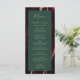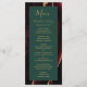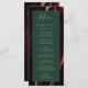 Este elegante e moderno menu de casamento mostra uma cor-d-água, borrifada, de fundo, aparada com brilho dourado. O texto aparece em letras elegantes douradas e fontes em cores em um retângulo verde esmeralda. O design de ágata é repetido no reverso.