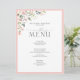 Crie a configuração perfeita de recepção com este design de menu de 6,5 x 8,75" com um buquê floral de rosas de cor d'água e macios em tons de rosa-pincel, pêssego e branco, com folhas botânicas verdes e exuberantes em tons de amor e eucalipto, e bordado a rosa. Personalize seus detalhes acentuados com uma bela caligrafia feita à mão moderna em branco suave e preto. Perfeito para, mas não limitado a, aquele casamento no quintal e no jardim. Parte de um conjunto correspondente. Consulte a coleção de cheios aqui: https://www.zazzle.com/collections/elegant_pink_watercolor_floral_wedding_suite-119378725026193431 Entre em contato com o designer para obter produtos correspondentes. Copyright Elegant Invites, todos os direitos reservados.