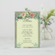 Menu de Casamento Verde Floral e Rosa com Aquarela