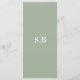 Menu de Casamento Verde Folha de Cor Sólida Simples. Esta moderna placa de menus é simples clássica e elegante, com um fundo de cor sólida simples e uma bonito letra de escrita com alfaias. Mostrada na nova estrada. Com um monograma bonito no lado de trás. Disponível em várias opções de cor ou não se sinta à vontade para editar as cores no editor (clique em personalizar mais enquanto personalizar). Para ver mais, procure as coleções de casamento de 2022 da Chic Paperie para ver todas as tendências de designs e cores de casamento para este ano.
