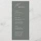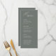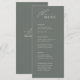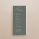 Elevem sua capa de casamento com nosso Menu de Casamento Moderno da Sage Green Boho. Apresentando fontes elegantes de caligrafia em um fundo verde de caligrafia, este menu de dupla finalidade serve não apenas como um guia para suas delícias culinárias, mas também personaliza cada assento de convidado com seu nome lindamente escrito no verso. Não há necessidade de placas de lugar separadas, fazer para uma configuração de mesa perfeita e sofisticada. Perfeito para casais que buscam uma mistura de encanto e elegância moderna.