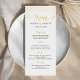 Glamor faux glitter gold handlettering calliografia cardápio de casamento design e pontos dourados confetti em fundo branco editável, bonito shimmer falso efeito metálico de ouro reluzente, moderno, chic, elegante e elegante, perfeito para casamento vintage, casamento ou casamento no inverno de arte deco. Cor de fundo editável para corresponder às cores do tema do casamento. Personalize seu próprio cartão de menu e adicione um toque pessoal ao seu casamento! Veja a seguir todas as peças correspondentes nesta coleção de caligrafia luxuosa com brilho.