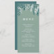 Este cardápio de coquetel apresenta uma ilustração de folhagem nevada em uma paleta de cores verde e branca, incluindo frutas vermelhas, eucalipto, galhos de abeto e folhas. Isso seria perfeito para um evento de coquetel elegante ou para um cardápio de bebidas em um casamento de inverno.