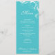 Este menu para a recepção de casamento é brilhante e bonito com um delicado carrossel branco, com um lindo fundo azul curacao. (A cor de fundo é personalizável!) Com um olhar de Caribe romântico e lento que é clássico, elegante, mas moderno com uma sugestão de safra, este design é um favorito de verão. Esta é parte de nossa coleção de noites Filigree Swirl que tem ambas espirais brancas sobre um fundo de turquesa/Aqua, e espirais azuis de turquesa sobre um fundo branco, para que você possa se misturar e combinar com seu gosto. Para personalizar a cor do plano de fundo, basta clicar no botão "personalizá-la" para escolher uma cor desejada. Perfeito para qualquer casamento de primavera, verão ou praia onde turquesa é a cor.
