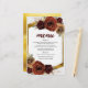 Este cardápio de casamento apresenta óleo rústico pintado com borda arborizada terra seca em tona outono flores sobre verde e grama pampas com uma elegante fuselagem de ouro e fundo.