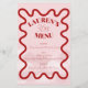 Celebre seu estilo de 30! Este menu da parte do janto aniversário de 30 anos apresenta borda vermelha e rosa ondulada com letra de caligrafia cursiva. Combine com o nosso convite de festas aniversário de 30 anos.