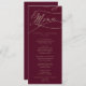 Menu de Jantar de Casamento com Caligrafia Burgund
