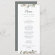 Este cartão de janto floral de inverno é perfeito para um casamento elegante. O simples design apresenta flores brancas com verde-inverno e folhas de eucalipto, com um sentimento moderno do país.