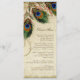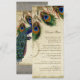 COLOR PALETTE: metal prateado, bronzeado, creme, azul real, verde e ferrugem. DESIGN: Correspondência da placa do menu Janto. Os nomes da noiva e do noivo e a data do casamento estão na frente desta design. Esta antiga coleção de casamentos inspirada em vintage tem um conjunto completo de produtos e pode ser criada em várias cores. Se quiser que seja igual ao seu casamento, avise-nos por e-mail e ficaremos felizes em ajudá-lo. Este design consiste num pavão estático sobre um ramo de árvore, onde se pintava três penas de pavão e sobre uma gravura de anjo, espirais, escrita manual antiga, rendas pintadas manualmente sobrepostas em pergaminho e uma bela cor damasco de arte original. A cor de fundo pode ser alterada para corresponder ao seu casamento.