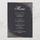 Um menu elegante de janto desenhado por Stacey Meacham, com cantos de confete de ouro e um rico fundo textural. Todo texto é completamente personalizável, permitindo que você altere a fonte, a cor e/ou o posicionamento de todas as palavras. Use isso facilmente para um evento corporativo também.