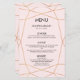 Cartão de menu de janto de casamento em padrão geométrico de rosa de ouro. Um casamento perfeito e minimalista. PERSONALIZAR ESTE ITEM A cor de fundo pode ser alterada com a ferramenta online de opções de cor de fundo zazzle. Para um olhar coeso, visite minha loja para ver as coleções de nossa coleção geométrica de ouro rosa. Trabalho de arte projetado por Calani May.