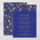 Menu de Janto de Correspondência para assuntos de janto, eventos de negócios corporativos e recepções de escala superior NOTA: Este é um convite impresso plano, não há brilho ou folha metálica usada. Os efeitos são produzidos graficamente. DESIGN COLLECTION: Celebração elegante, brilhante e divertida no trabalho? Esta bolinhas confete de tamanho aleatório, vamos de convite para casamento que seus convidados sabem que uma festa está acontecendo! Grelha de ouro brilhante e luxuoso de vários tamanhos brilha em padrões aleatórios com estrelas cintilantes cintilantes. Perfeito para uma grande variedade de estilos cerimoniais, desde a gravata negra formal até o país rústico, ao ar livre sob as luzes cintilantes. Você pode personalizar isso para qualquer tipo de participante alterando os campos de modelo fáceis de usar. Cores: cor azul escura e azul-escura da safira do cobalto real e ouro