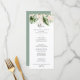 Este cartão de janto floral de folhagem tropical dourada é perfeito para um casamento rústico. O design apresenta ouro de aquarela pintada à mão e folhagem verde tropical com flores escamoteadas elegantes. Este menu pode ser usado para recepção de casamento, janto de ensaio, chá de panela ou qualquer evento.