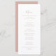 Este cartão de cardápio rosa minimalista de janto é perfeito para um casamento moderno. O design simples e elegante apresenta a tipografia de script clássico e de rico em rosa-ouro. Este menu pode ser usado para recepção de casamento, janto de ensaio, chá de panela ou qualquer evento.