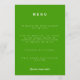 Menu de mariage Colorus – Vert Éclatant et raffiné, ce menu Colorus habille votre table de mariage d’une touche de douceur colorée. Sa teinte vert citron vive et élégante, fait écho à une célébration pleine de joie et de tendresse. Typographie contemporaine, mise en page épurée et équilibre graphique : chaque détail est pensé pour sublimer votre décoration tout en présentant avec soin les mets choisis pour vos invités. Une carte gourmande et stylée, à l’image d’un moment inoubliable.