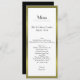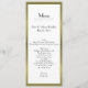 Menu de mesa de casamento longo e magro feito em um toque de Art Deco, com um fundo branco e um tom de ouro ao redor do exterior. Personalize todo o texto para se adequar ao menu de recepção de casamento. Aditamento adorável à sua recepção de casamento.