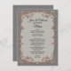 Menu de mesa de cinza com gráficos de uma armação de pessegueira e marfim colorida de rosa. Aditamento adorável às suas mesas recepções de casamento. Personalize o texto para suas necessidades de recepção.
