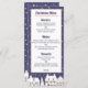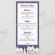 Telhados de neve e neve em fundo azul armando seu menu de Natal personalizado.