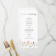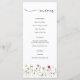 Um cardápio perfeito para um bebê ou chá de panela temido de flor silvestre. Apresentando flores silvestres e verde de cor aquosa. Itens correspondentes na Coleção de Prados de Flor Selvagem encontrados no compro Adore Paper Co em Zazzle. Personalize com o texto do menu para um brunch, almoço ou janto.
