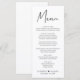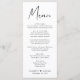 Menu de recepção de casamento moderna com "Menu" em um script quic contemporâneo, seu menu personalizado em tipografia simples, seus nomes unidos por um coração e sua data de recepção.