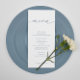 Menu moderno e elegante apresenta um design azul e branco empoeirado. Personalize com o menu do seu evento com o modelo fácil de editar, com uma fonte de script elegante e uma fonte de serif elegante. Veja os itens correspondentes na coleção "Dusty Blue Modern Elegant".