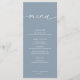 Menu moderno e elegante apresenta um design azul e branco empoeirado. Personalize com o menu do seu evento com o modelo fácil de editar, com uma fonte de script elegante e uma fonte de serif elegante. Veja os itens correspondentes na coleção "Dusty Blue Modern Elegant".