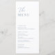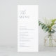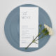 Menu moderno e elegante apresenta um design azul e branco menos poeirento. Personalize com o menu do seu evento com o modelo fácil de editar, com uma fonte de script elegante e uma fonte de serif elegante. Veja os itens correspondentes na coleção "Dusty Blue Modern Elegant".