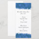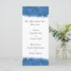 Este cardápio elegante é perfeito para qualquer recepção. Ele apresenta um padrão de floco de neve azul e branco no topo e no fundo. O fundo é um branco fresco com texto preto. Todo texto é personalizável.