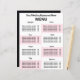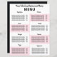 Ajudando você e seus clientes a permanecerem seguros. Use este menu temporário que é descartável. Adicione suas opções de menu e informações do restaurante. Adicione uma foto ao contrário, se desejar. Este também pode ser um folheto para seus clientes se você estiver entregando em casa. Mantenha as informações de opção de comida curtas. O cliente pode levar esta casa com eles, para que funcione como um cartão de visita. Isto é rosa e branco. Parte dos regulamentos para reabertura são menus descartáveis, use esta modelo para adaptar seu menu para a reabertura do seu restaurante. Se precisar de ajuda para personalizar isto, entre em contato com o designer. Sem ordem mínima.