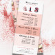 Esta bela placa de rack de produtos cosméticos e serviços é um na moda e um complemento prático para o seu Make Up Artist Business Suite. Com designs de cosméticos de aquarelas com um tema de pincel rosa suave, esta placa de rack complementa sua estética divertida e profissional. Com três seções claras de ofertas, os clientes podem facilmente encontrar exatamente em que serviço estão interessados. Funcional e divertida, esta elegante e solteiro brochura não só melhora sua imagem marca, como também estimula negócios repetidos, garantindo que seus clientes se sintam valorizados e apreciados. Eleve a sua experiência de cliente com este belo cardápio projetado para compor artistas e se marca com este design profissional de destaque!