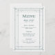 Estes menus glamourosos de casamento apresentam um giro moderno no deco clássico de arte. Uma imagem geométrica verde festiva e ornamentado e ornamentação decoram um elegante fundo prateado/branco para um espetáculo de casamento dramático, glamouroso e vintage de 1920 que é perfeito para o seu casamento de Natal.