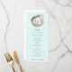 Mostre seu menu de recepção de praia com este lindo menu formal de janto surfboard. Este design tem uma imagem aquosa de um lugar de praia tropical com decorações de Natal. As cores utilizadas incluem: azul de ardósia, verde de floresta, marfim e bronzeado.