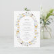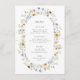 Cardápio de flor silvestre elegante com cardápio contendo flores silvestres delicadas de verão em azul, amarelo, laranja e roxo.